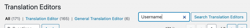 If you are assigning additional projects to an existing PTE, use the search box at the top right of the Translation Editors main screen to search for the user.