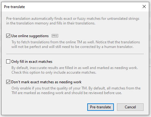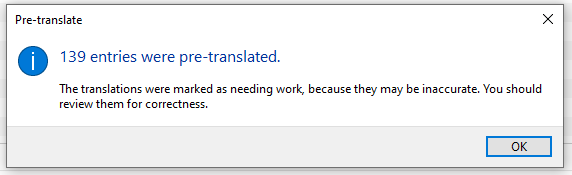 - If you have a licensed version of Poedit, you can now pre-translate the empty strings.