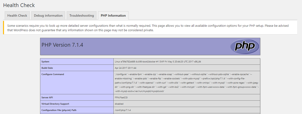 The PHP information tab is here for those extra hard issues, where normal information may not be enough and information about your sites more granular settings are required.