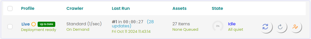 - The Last Run column should show the time the last scan took and when it completed. If updates are listed, this number should be the number of changes submitted to the Git repository. i.e. the actual number of files changed since the last deployment.