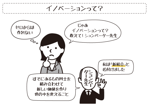 シュンペーターは、イノベーションを、“すでにある1と1を新しく結びつける新結合による価値創造”と定義しました。