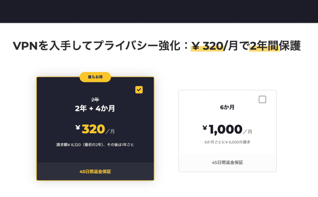 14~45日間の全額返金保証もあるので、気軽にVPNを始めたい人はぜひ検討してみてください。