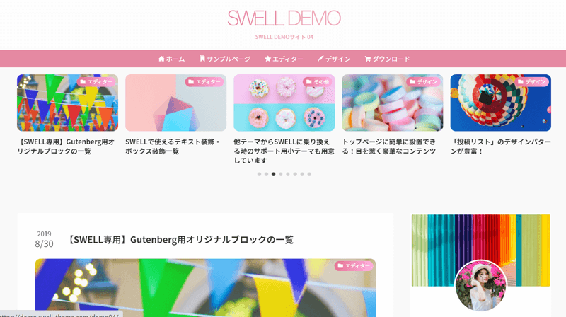 参考としてSWELLのデモサイトをいくつか見てみましょう。