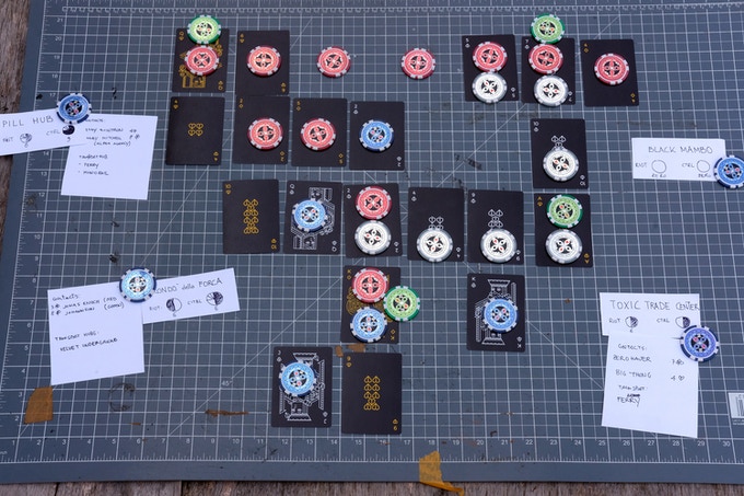 It all starts with a matrix. An empty table and your favourite card deck (I use a Killer Bees deck in the picture)