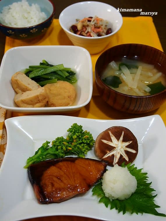 今夜は白いごはんによく合うおかず、ぶりの照り焼きを主菜に