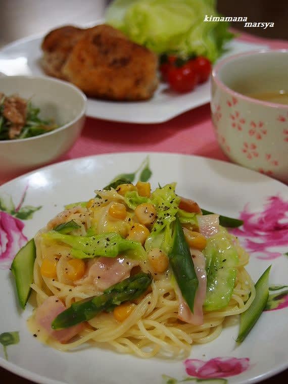 ・春野菜のコーンクリームパスタ