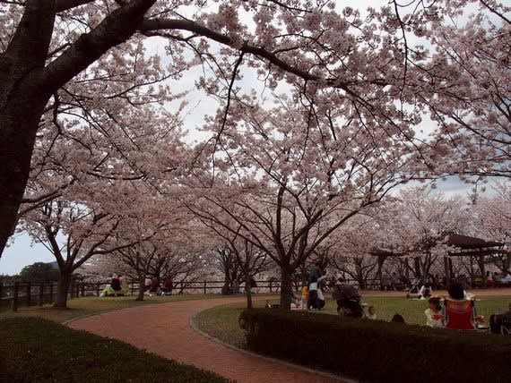 花曇りの中、近くのダム公園でお花見。