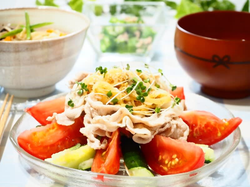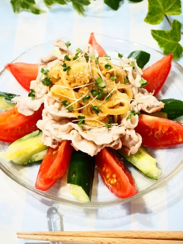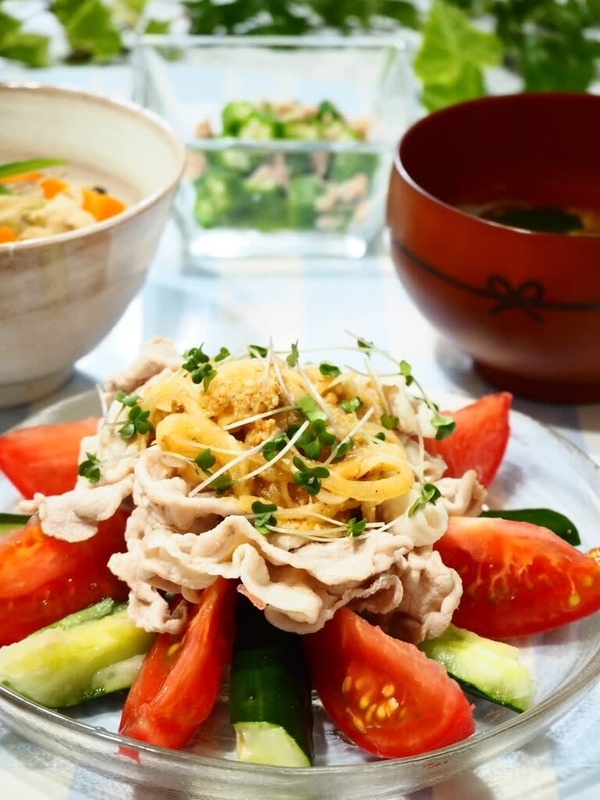 🍴夏野菜と豚しゃぶのごま玉ねぎだれ
