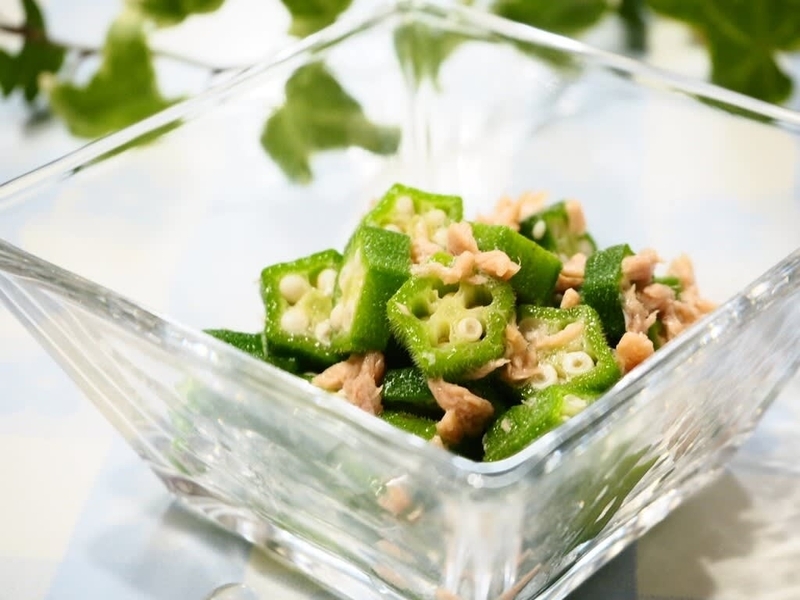 ☆オクラはたっぷりの湯で塩ゆでし、食べやすく切り、ツナと混ぜ合わせて、そのままいただきました。