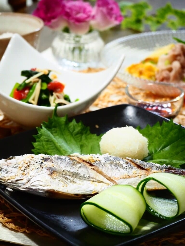 新鮮なアジの塩焼きといっしょに、おいしくいただきました。
