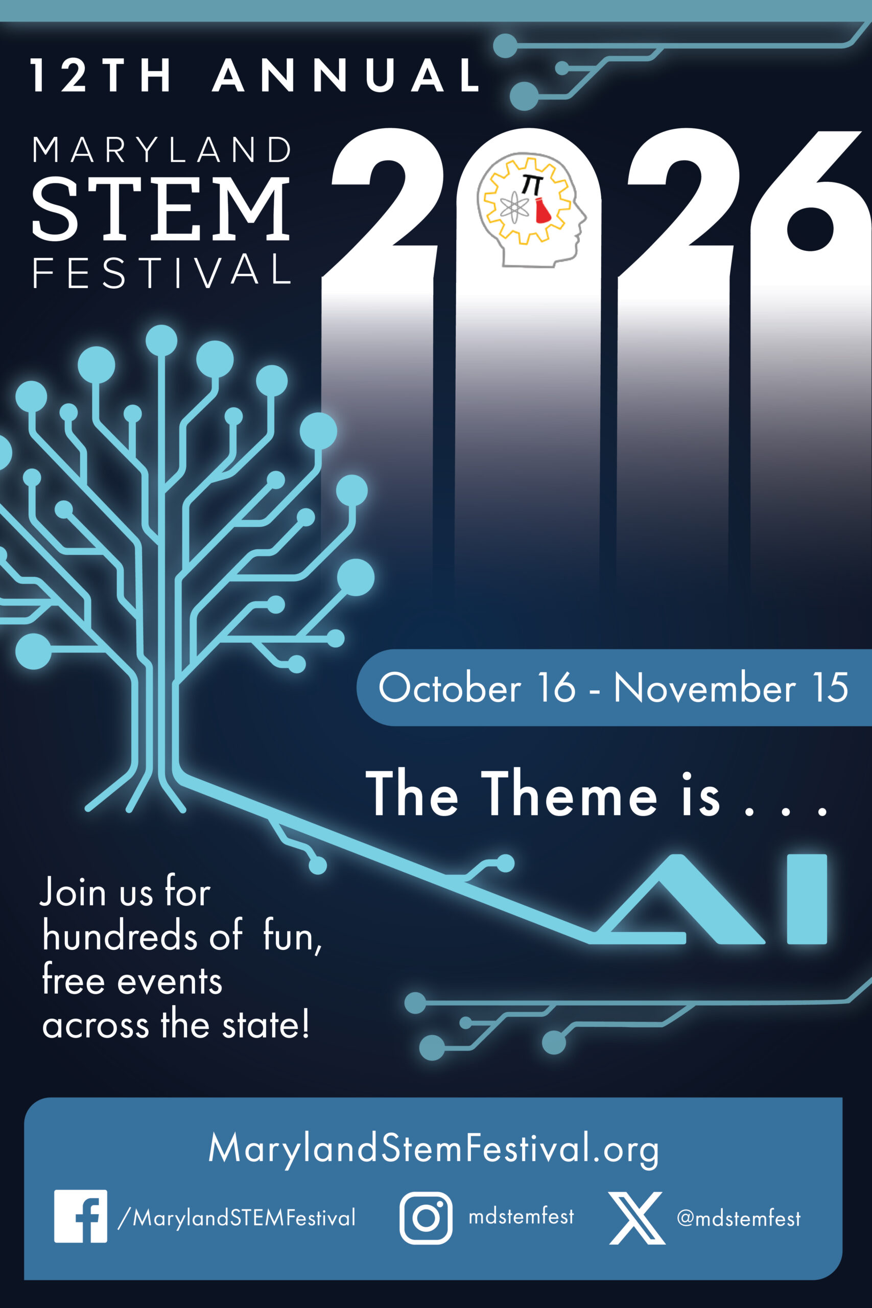 The 2026 Maryland STEM Festival will run from October 16th through November 15th. The theme is AI. Check back for detials as they develop! Looking to another great Festival!