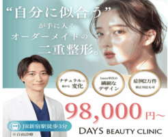 二重整形【Days Beauty Clinic】 〜二重・クマ取り・デリケートゾーン治療までトータルサポート〜 美容医療に興味を持ったきっかけ 30代に入った頃から、鏡を見るたびに「昔より目が小さく見える」 「目の下のク・・・
