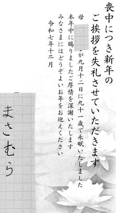 なお、喪中につき新年のご挨拶については失礼させていた