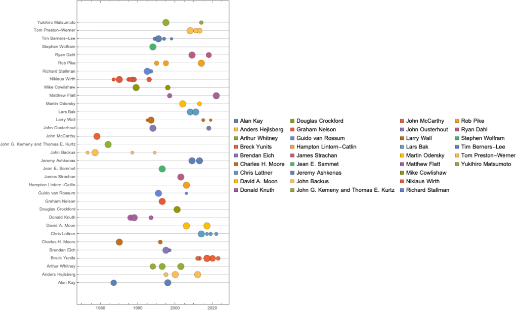 - The Ages of Programming Language Creators (Reddit)