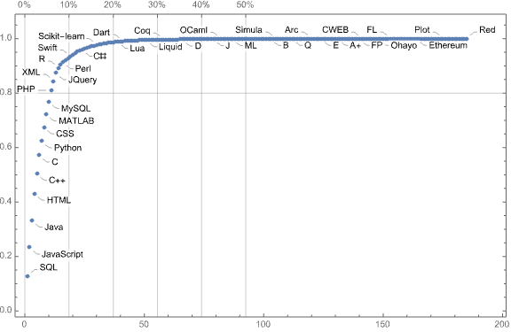 Remark: Again, the plot above is “wrong” — programmers use more than one programming language.