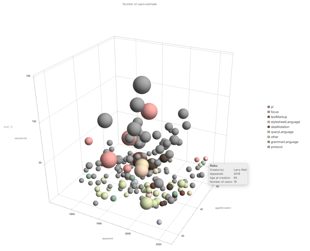 Remark: In the 3D bubble chart plot “Mathematica” and “Wolfram Language” are easier to discern.