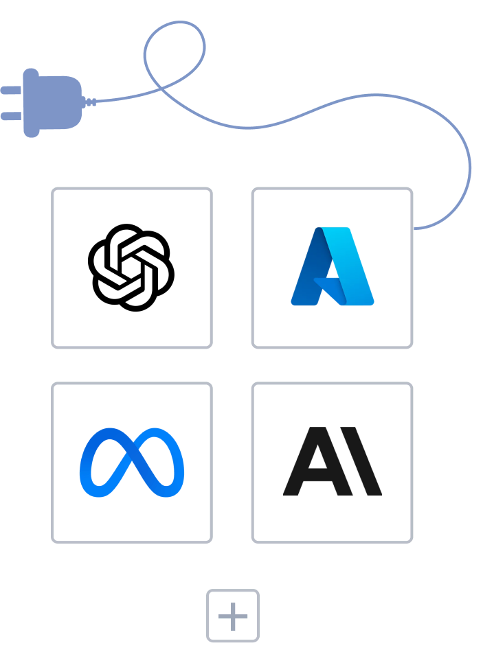 Don’t get stuck with a single LLM or AI provider; connect to one or more AI services of your choice.Keep proprietary data secure and compliant
