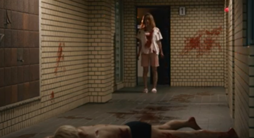 血を浴びた早苗が階段を下り、この部屋まで逃げて倒れた血だらけの隼人の姿を確認した。タバコを喫って、火災検知が作動しシャワーが作動する。しかし、血は乾ききっている。どのような愛で何故この行為に至った。ふしぎなオープニングでした。(笑)