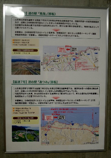 で、道の駅あつみしゃりんは、日沿道の延伸(朝日温海道路の開通)とともに、鼠ヶ関近くに移転することになっているのです。朝日温海道路のPAの1つになるのか。