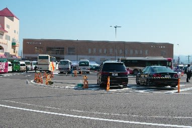 さて、南口に出ました。ベンガラ調の高架駅です。駅舎の前は芸能エリアなどとなっており、このような画角でしか撮れません。ブルーインパルスも飛行したらしいです。