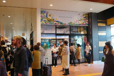 工事中の温泉中央口の前では何やら物販が。