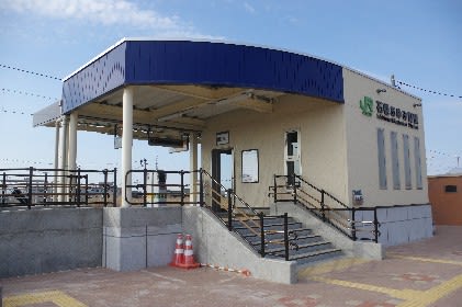それでは駅舎撮影。あの「3.11」の日にリニューアル駅舎が供用開始となりましたが、東日本大震災で一旦使用停止となり、運転再開された平成24年2月に使用再開されたものです。右手にはトイレがありますが、平成23年3月26日の築です。