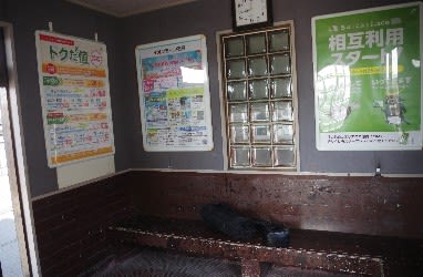 822Sがはけたところで待合室を。ドア部分を除いて木製のベンチが設えられています。すぐにスーツ姿の男性がやってきて…。蛇田駅、恐るべし。