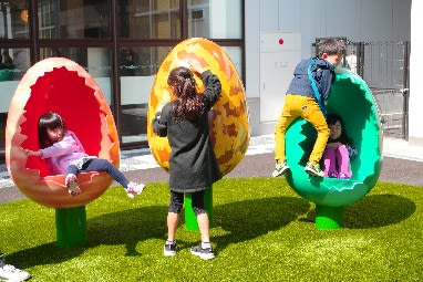 小さな恐竜が並んだ広場もあり、子供たちが遊んでました。
