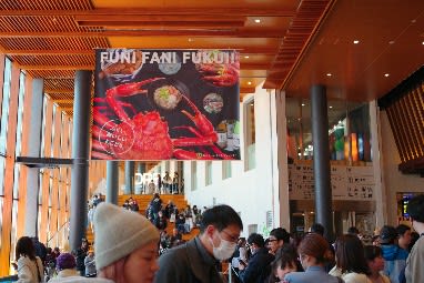 セブンイレブンで土産物を購入して待合室に入り、残り少ない時間で見取り図を描きます。越前そばの向かいにありました。
