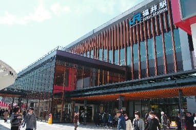 東口の南手にはアオッサが。福井県県民ホールなどとなってます。