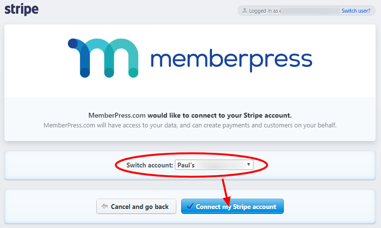 Ahora que la pasarela Stripe está creada, puede proceder a conectar su cuenta Stripe a MemberPress.