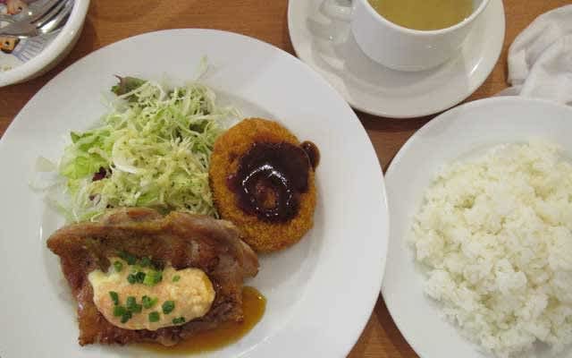 照り焼きチキン明太タルタルソース&北海道男爵コロッケ ライス・スープバー付 850円+税