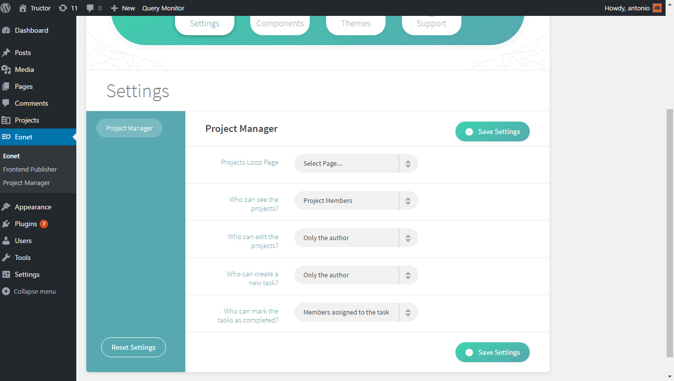 /wp-content/plugins/eonet-project-managerdirectory, or install the plugin through the WordPress plugins screen directly. - Activate the plugin through the ‘Plugins’ screen in WordPress