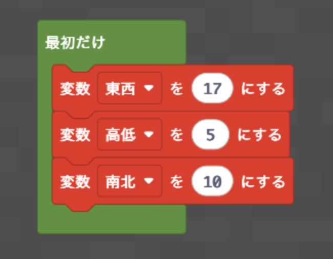 ※変数については、別記事「【MakeCodeシリーズ④】変数を活用した建築のやり方」をご参照ください。