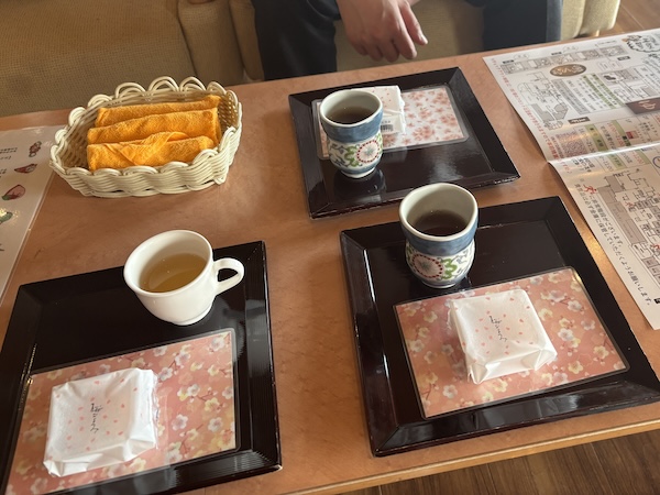 チェックイン時には、温かいお茶とお着き菓子を頂きました。