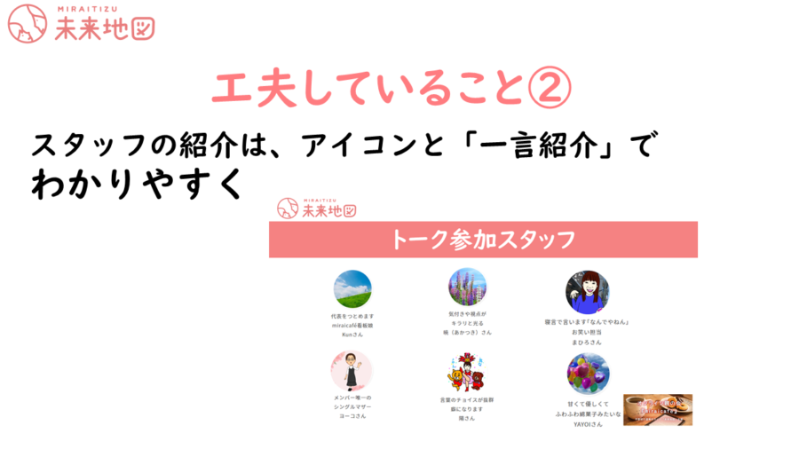 2020年7月からここ未来地図内で【オンライン親の会】miraicaféをスタートし、全国の皆さまとお話をしています。