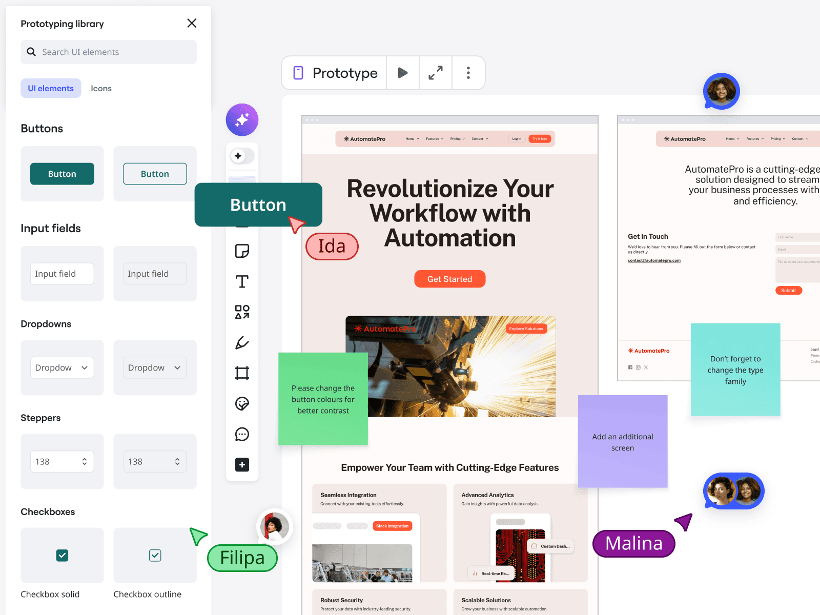 Hopp over de pikselperfekte prototypene for tidlige ideer. Utforsk flere konsepter raskere for å finne riktig retning, og fokuser på å finpusse vinnende ideer.