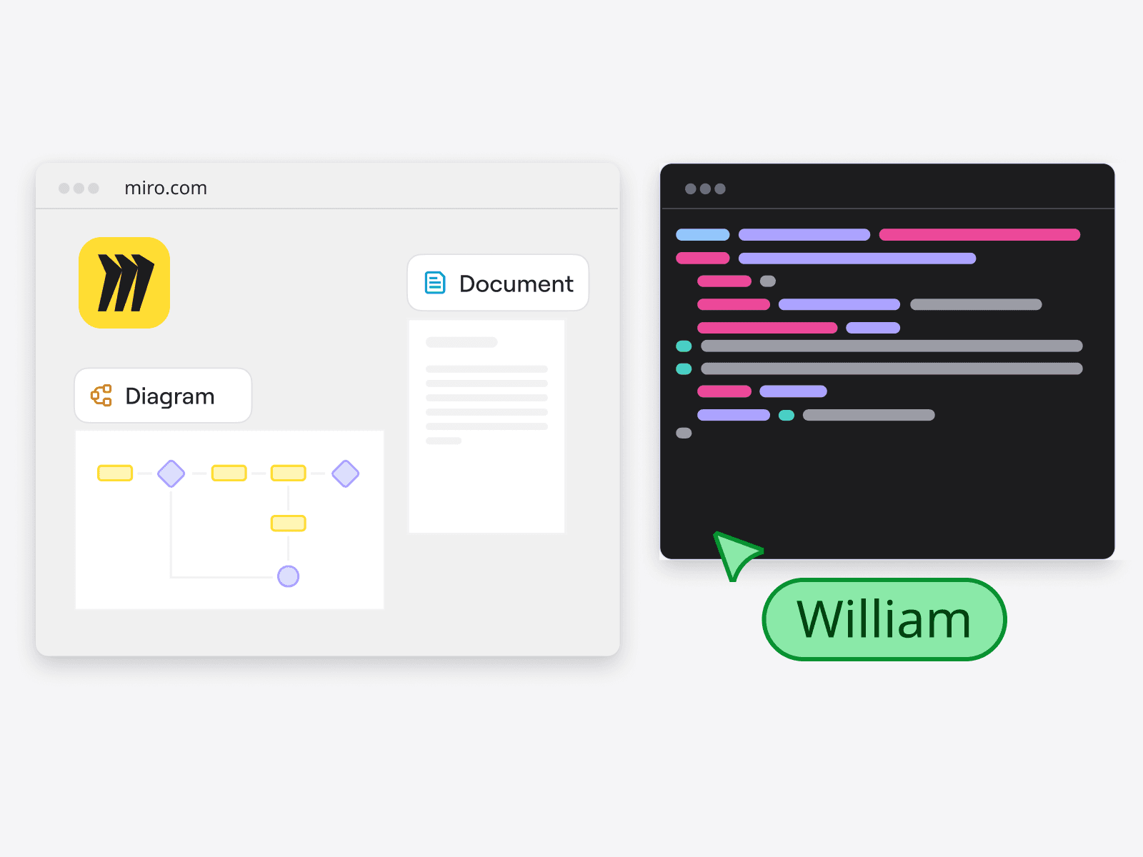Połącz Miro z setkami narzędzi AI dla przedsiębiorstw za pomocą naszego serwera MCP. Przenieś swoje ulubione narzędzia AI na planszę, osadź kontekst pracy zespołu w dowolnym systemie i uczyń Miro centralnym elementem swojej infrastruktury AI.