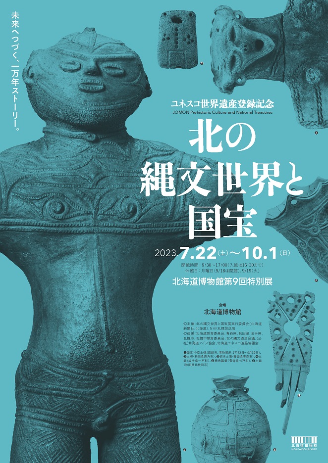 この展覧会では、世界に認められた縄文遺跡群の価値を紹介するとともに、国宝8件28点、国指定重要文化財38点を含むおよそ480点を一堂に公開し、未来へ続く縄文文化の魅力をご紹介いたします。