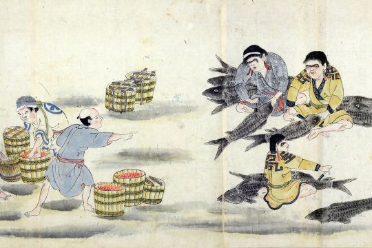 ★描かれたアイヌ民族のサケ漁 小玉貞晨『蝦夷国魚場風俗図巻』クローズアップ展示1