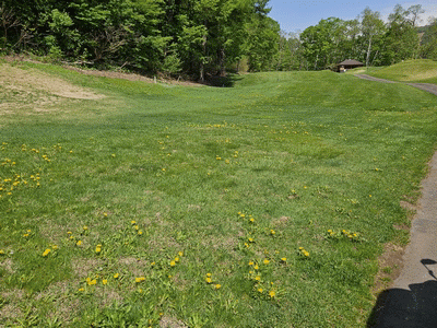 タンポポの群生があるホールでは 黄色ボールは使えませ~ん