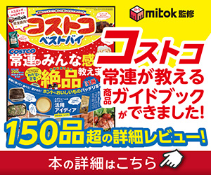 mitokのコストコ商品レビューが一冊のガイド本『コストコ ベストバイ』にまとまりました。主にコストコ初心者の方に向けたおすすめ食品ガイドです。コスパはよくても量が多すぎて初見では買いにくい商品たちについて価格、量、味などの特徴をまとめたものになります。商品選びのご参考にどうぞ。