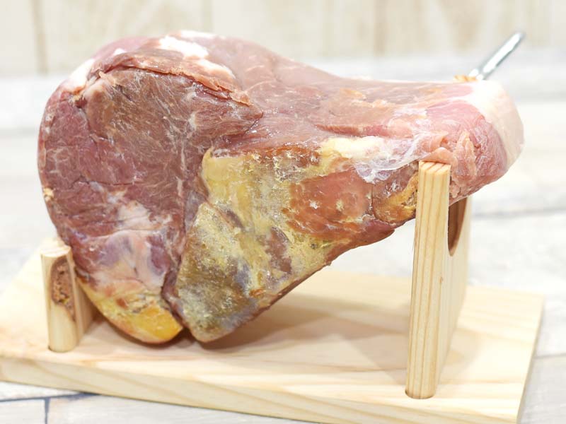 生ハムのかたまり、いわゆる「生ハム原木」です。好きなだけ切り出して食べられる、憧れの食材。パーティなどで用意しておけば、盛り上がること間違いなし!