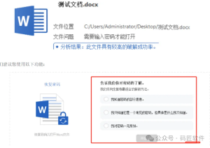 - 我只知道他是一个常见的密码,但具体是什么不知道:借助内置或自定义字典,能够快速定位密码。若您认为 word 密码相对简单,此方法将是高效之选。实测中,设置纯数字密码 “123456”,将 word 导入软件后,瞬间即可获取密码,轻松打开文件。