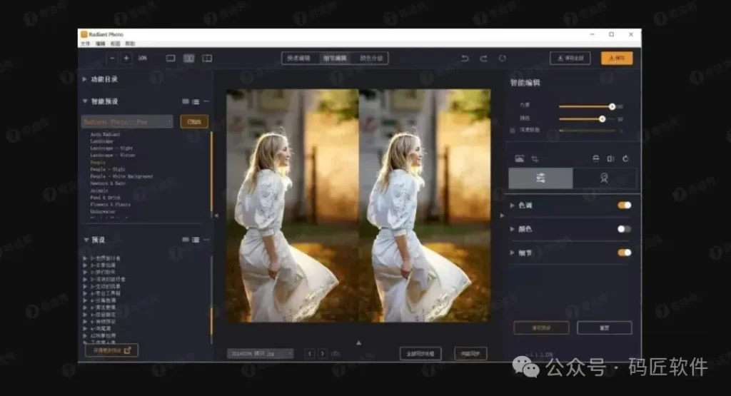 Radiant Photo不是普通的修图软件,而是一款搭载人工智能技术的图片处理工具。它懂得如何智能分析每张照片的内容,并施加恰到好处的优化。