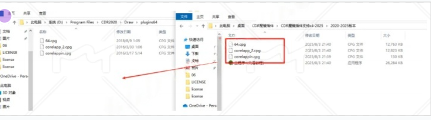 8、将⽂件夹中的三个.Cpg ⽂件复制到 CDR安装⽬录 CorelDRAW Graphics Suite 2020 Draw Plugins64下
