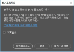部分PS版本载入tpl格式笔刷会出现如下图所示提示,如果出现可以优先选择“作为画笔导入”。