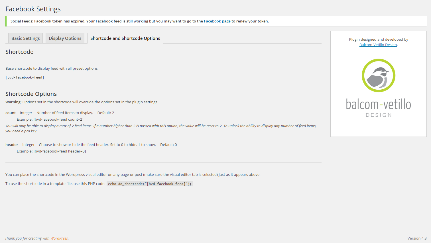 BVD Social Feeds is a WordPress plugin that displays any public Facebook, Twitter, or Instagram feed on your website. The plugin is designed to be easy and quick to setup. Each social network can be signed into individually and there are several options to customize the displayed feed. Each feed has its own shortcode that is used to display the feed.