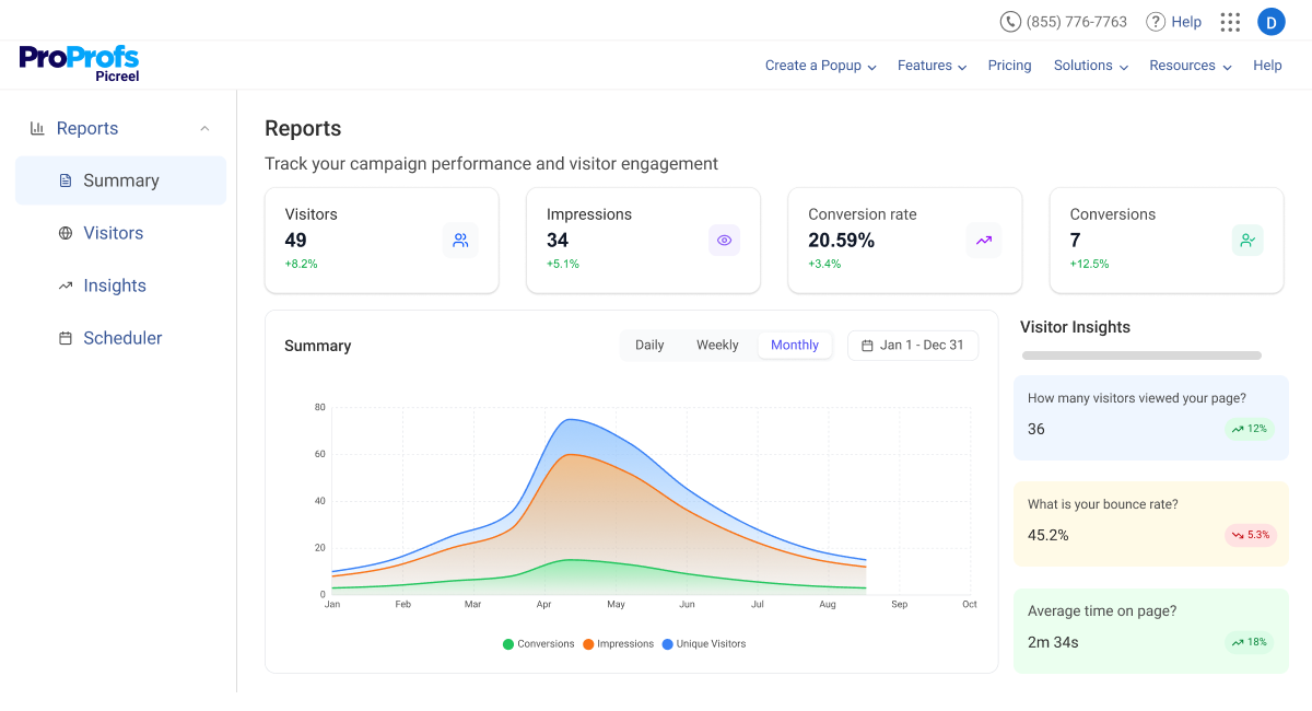 📈 Picreel is a delightful WordPress popup plugin that helps businesses turn website visitors into leads and customers with beautifully designed, behavior-based campaigns.