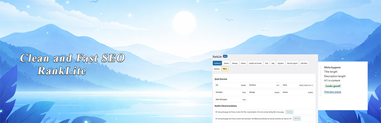 A separate Pro add-on (not required) can extend RankLite with AI-assisted titles/descriptions/alt-text/articles, advanced schema & sitemaps, a 404 monitor, and auto-redirects. The free plugin is fully functional on its own and does not require Pro.